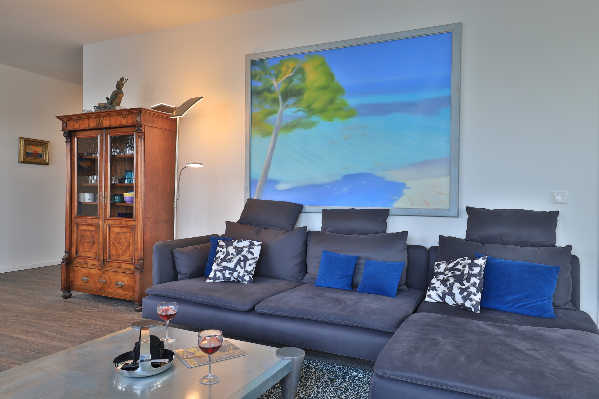 Der Fußbodenbelag ist ein hochwertiger Design-Lineboden (Vinyl).