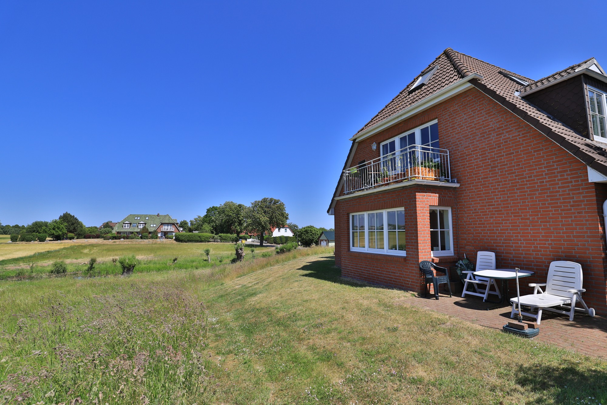 - sonnige Terrasse mit Weitblick über Wiesen und Felder