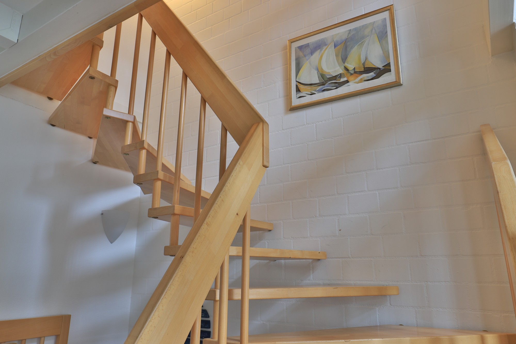 Über eine viertelgewendete Holztreppe erreichen Sie das Obergeschoss sowie das ausgebaute Dachgeschoss des Reihenmittelhauses. Im Obergeschoß steht Ihnen ein geräumiges Schlafzimmer, ein Wannenbad und ein Galeriebereich zur Verfügung. Dieser Bereich ermöglicht Ihnen eine Rückzugsmöglichkeit, um entspannt ein Buch/ die Tageszeitung zu lesen oder wenn nötig, via Homeoffice zu Arbeiten. Auch in dieser Geschosslage verleihen die sichtbaren Holzbalken im Deckenbereich den Räumen ein Hauch vom "Landhausstil".