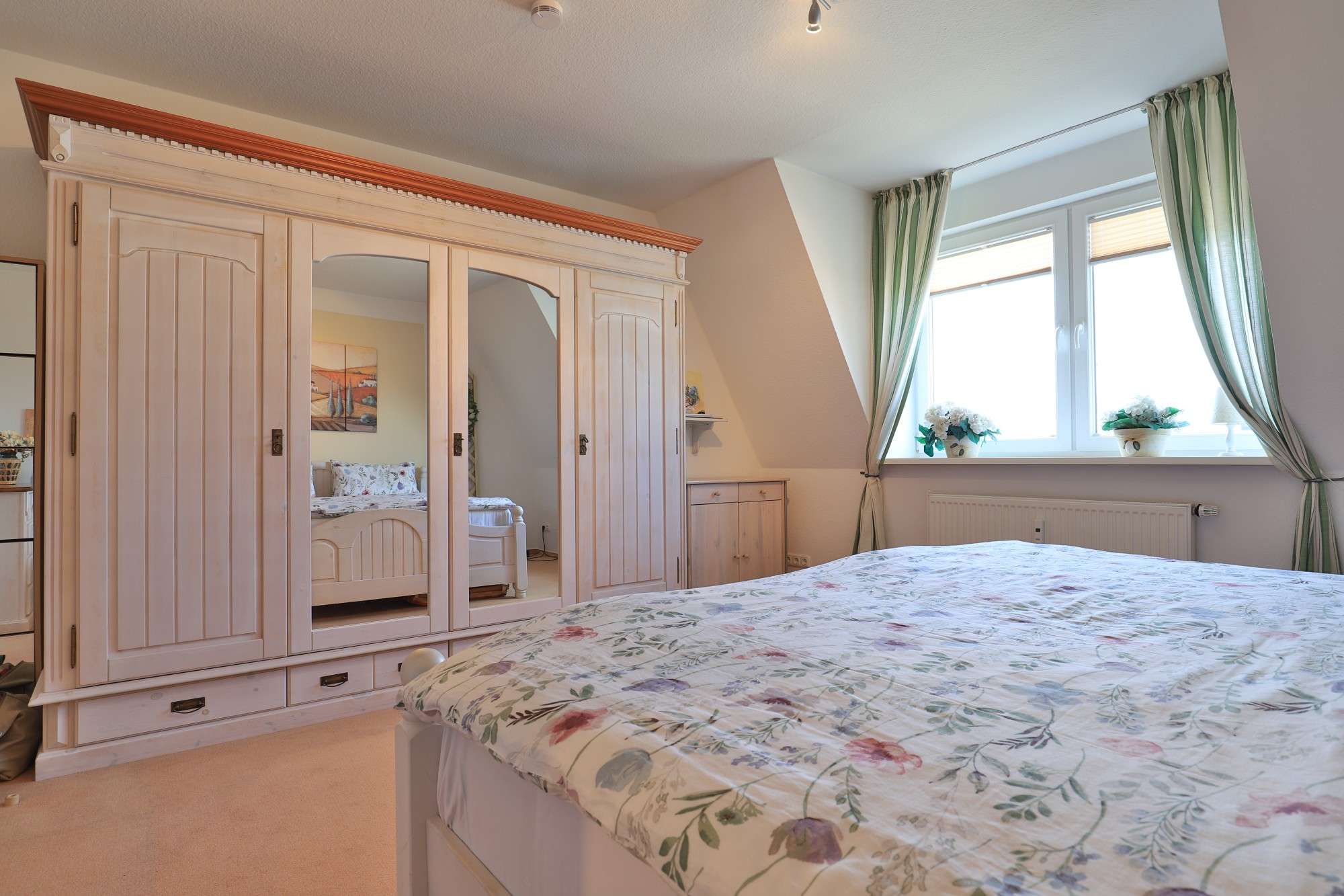 Beim Betreten der Wohnung gelangt man zunächst in einen Flur, von dem alle Räume zugänglich sind. Das innenliegende Vollbad ist mit einer Badewanne, Dusche, Waschtisch und, WC ausgestattet. Gegenüber liegend befindet sich das großzügige Schlafzimmer, welches mit einem Doppelbett und großem Kleiderschrank ausgestattet ist. Das geräumige Wohnzimmer, welches mit einem gemütlichen Ecksofa, auch Schlafsofa ausgestattet ist, ermöglicht Ihnen den Zugang zum Balkon in Südwestlage mit Blick auf die umliegende Neubaubebauung sowie die dahinterliegenden Haffwiesen. Hier den ganzen Tag verweilen. An sehr heißen Tagen im Jahr spendet eine Markise Schatten und bietet Schutz bei leichten Regenschauern. Der Balkon würde auch Platz für das Aufstellen eines Strandkorbes ermöglichen.