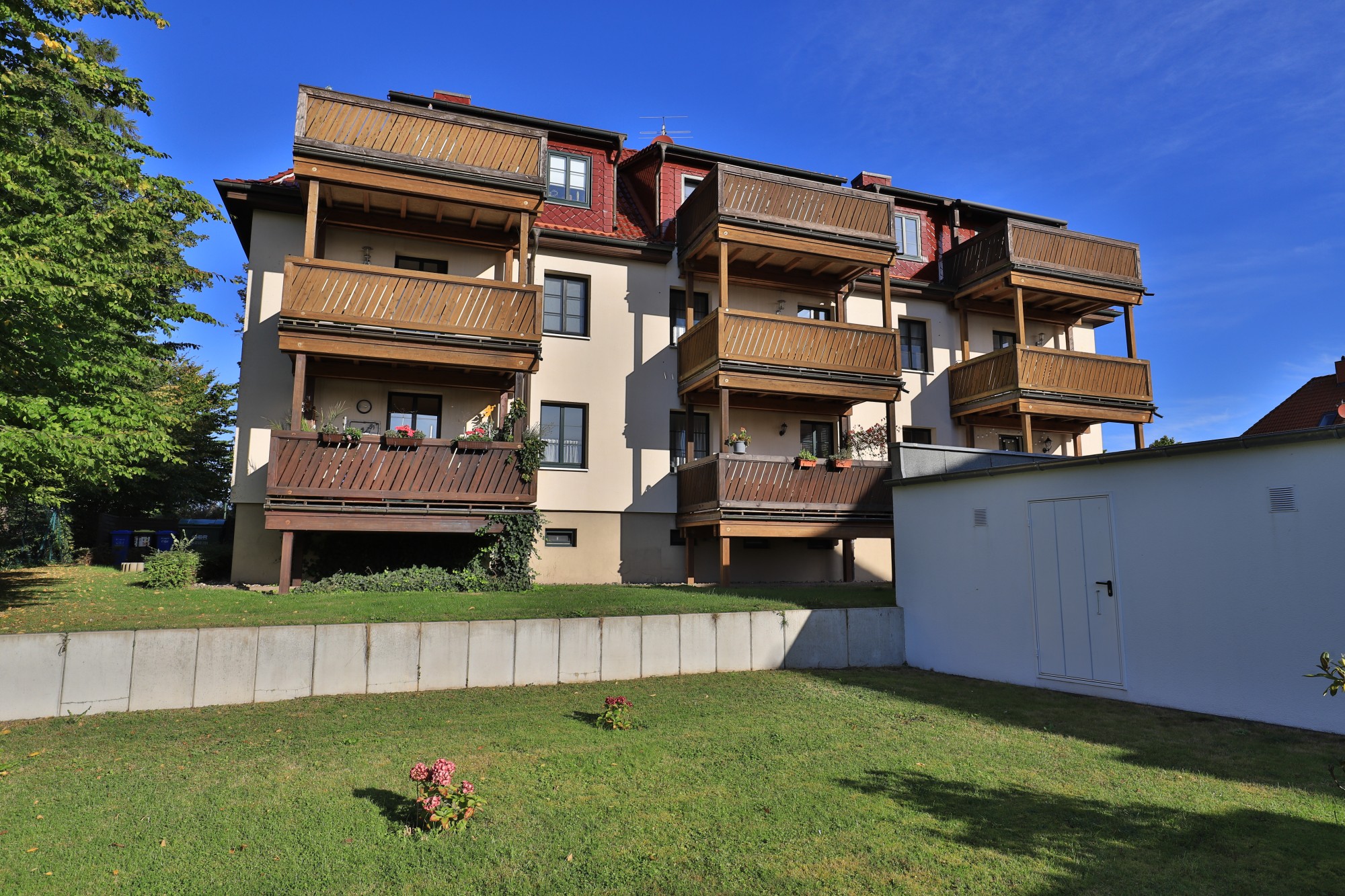 Jede der Wohnungen verfügt über eine Einbauküche sowie einen Balkon, der zum Entspannen im Freien einlädt. PKW-Außenstellplätze stehen den Bewohnern direkt am Haus zur Verfügung.