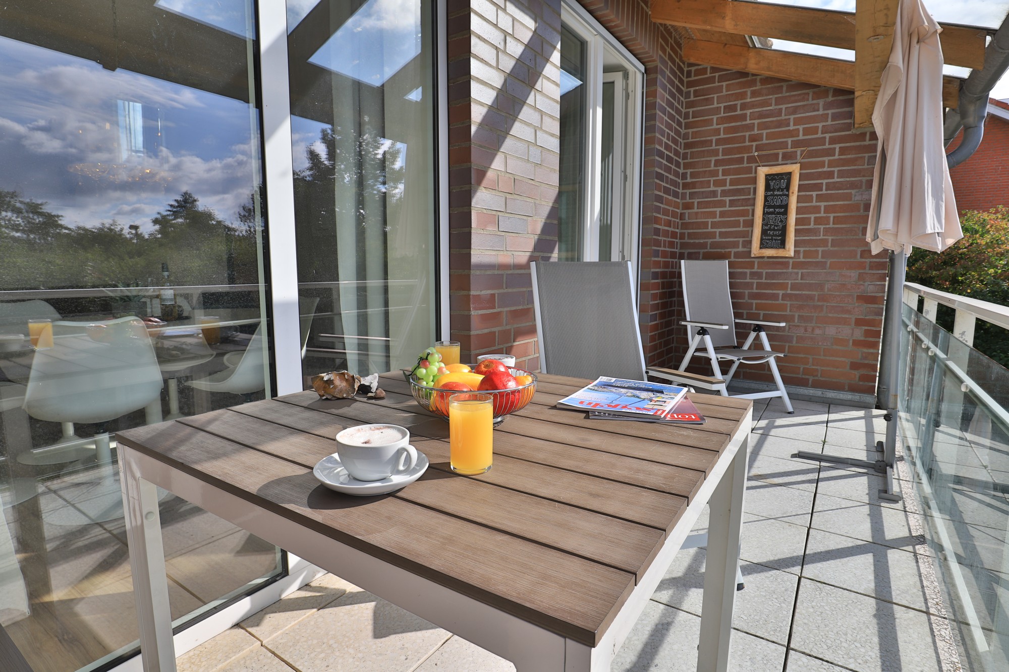 Ein ca. 7 m² großer Balkon in Südwestlage lädt zum Entspannen ein: Ob ein gemütliches Frühstück in der Morgensonne, ein ruhiges Sonnenbad am Nachmittag oder ein Glas Wein in lauschiger Abendstimmung – hier genießen Sie die Ostseeatmosphäre aus erster Reihe.