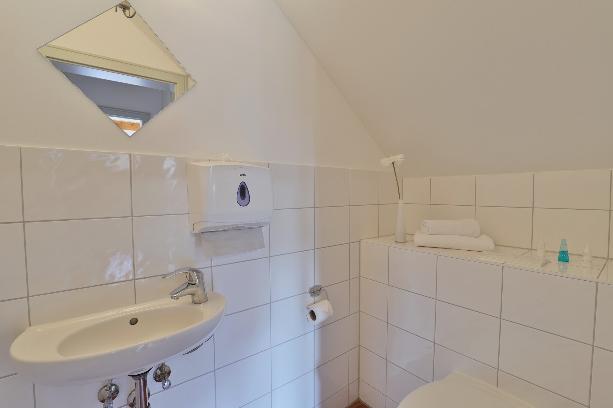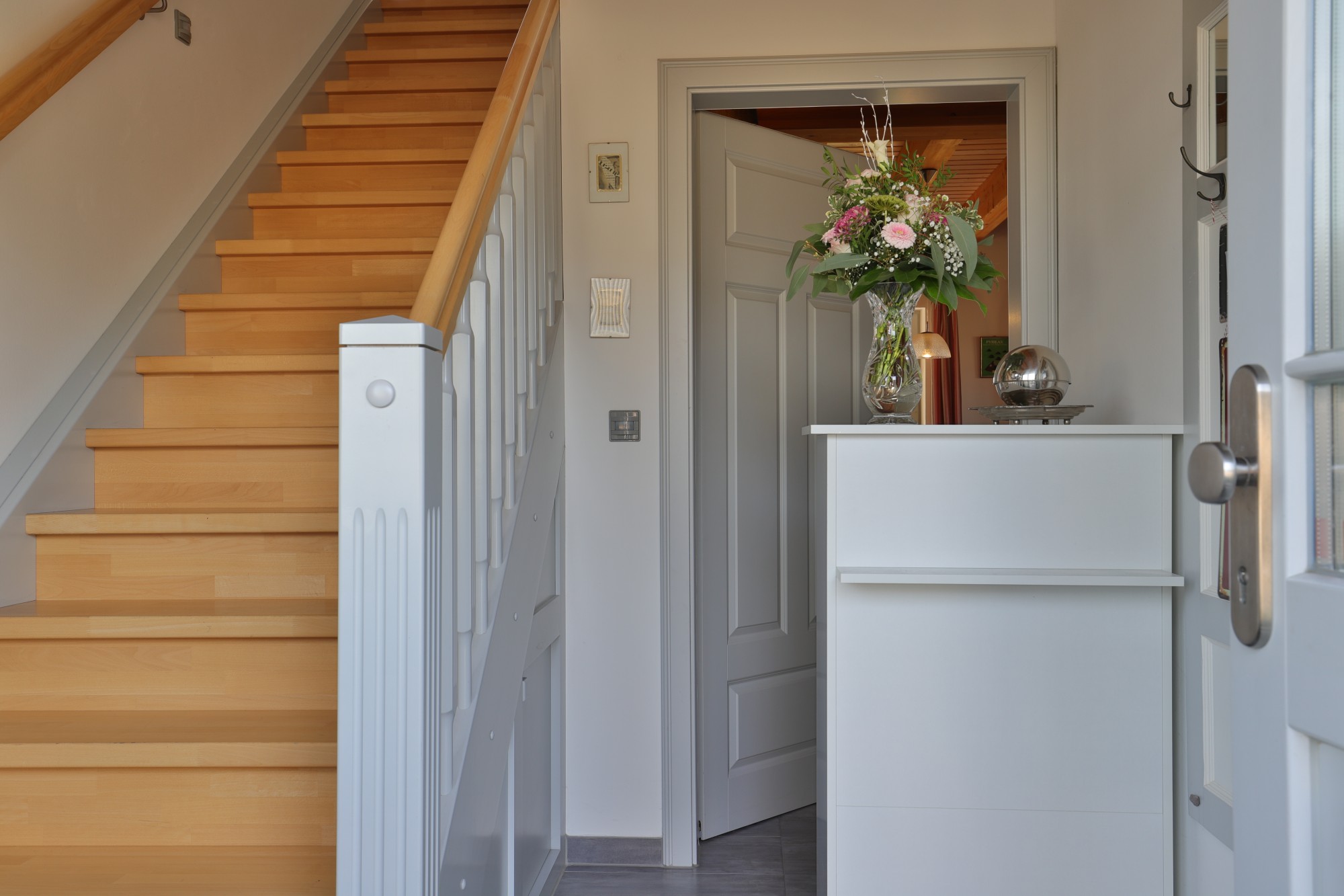 Ein gemeinsamer Flurbereich im Obergeschoss sowie ein zusätzlicher Abstellraum bieten praktische Nutzungsmöglichkeiten, etwa zur Lagerung von Ausstattung wie Bettwäsche oder Gartenmöbeln.