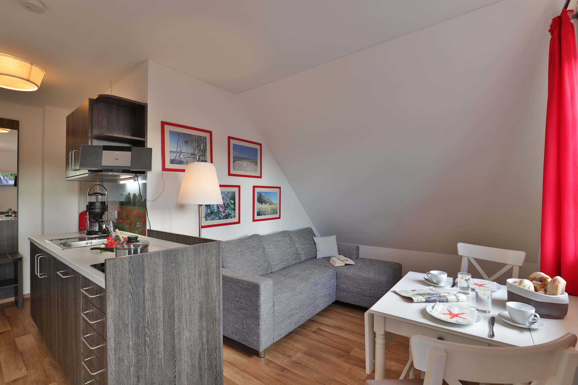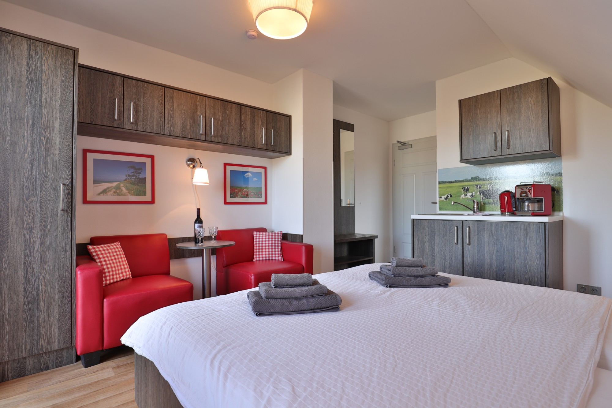 • kombinierter Wohn- und Schlafbereich mit integrierter Pantryküche