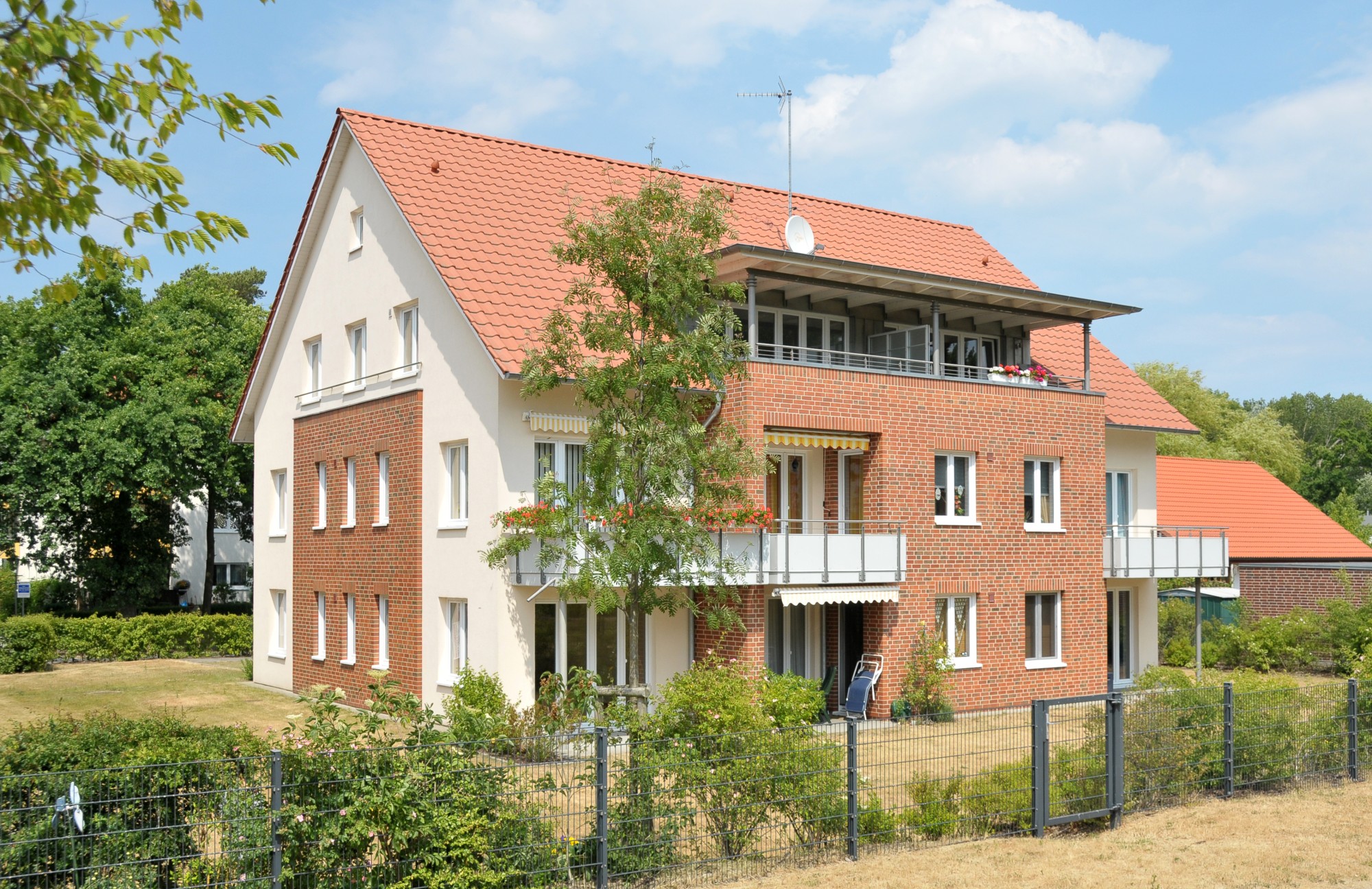 Das Gebäude mit insgesamt 8 Eigentumswohnungen lehnt sich architektonisch an die benachbarten Gebäude, die in den nachfolgenden Jahren errichtet wurden, an. Durch die Südwestausrichtung des Gebäudes ergibt sich eine sehr sonnige Wohnanlage. Das Haus ist von viel Grün umgeben.