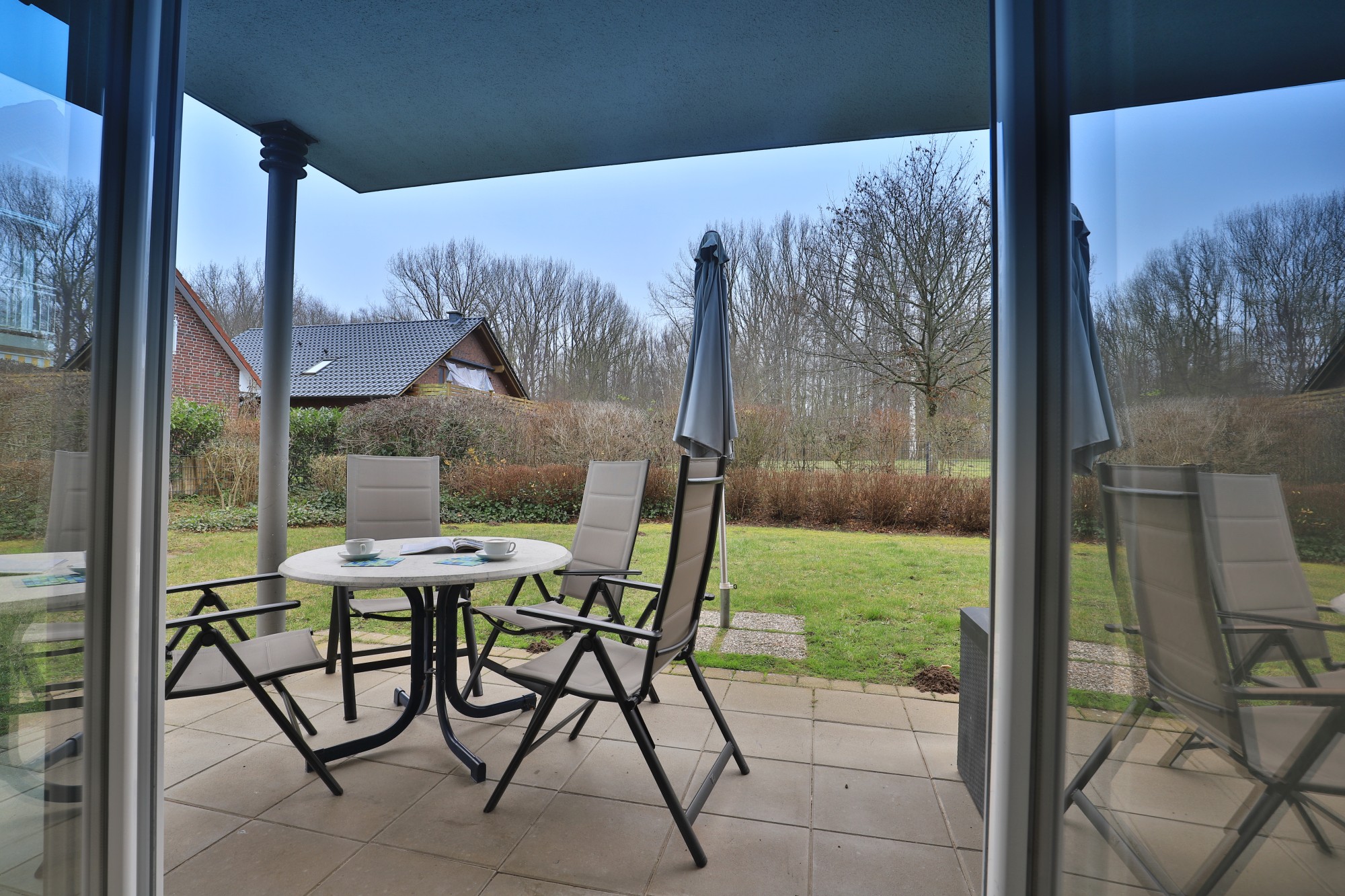 - Wohnzimmer mit Zugang zur Terrasse