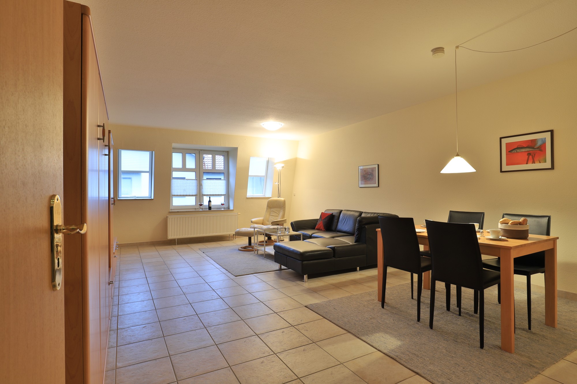 Der Wohn-/ Ess- und Schlafbereich ist großzügig konzipiert. Die vorhandene Einrichtung, wie das gemütliche Ecksofa, ein integrierter Essbereich sowie ein Schrankbett bieten Wohlbefinden und genügend Platz für die Nutzung mit 2 Personen. Das Duschbad ist gut geschnitten und verfügt über einen Waschmaschinenanschluss. Ein Toplader ist bereits vorhanden. Die großzügig geschnittene 1-Zimmer-Eigentumswohnung wird derzeit an Feriengäste vermietet.