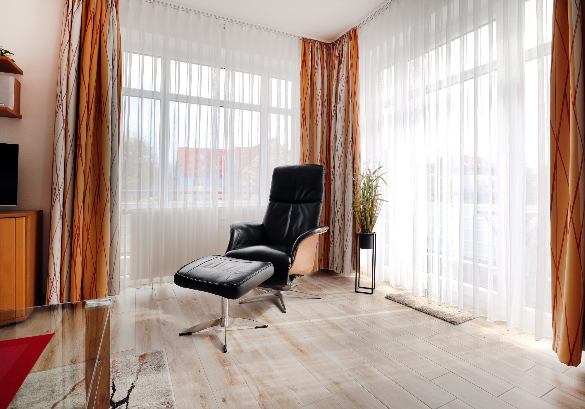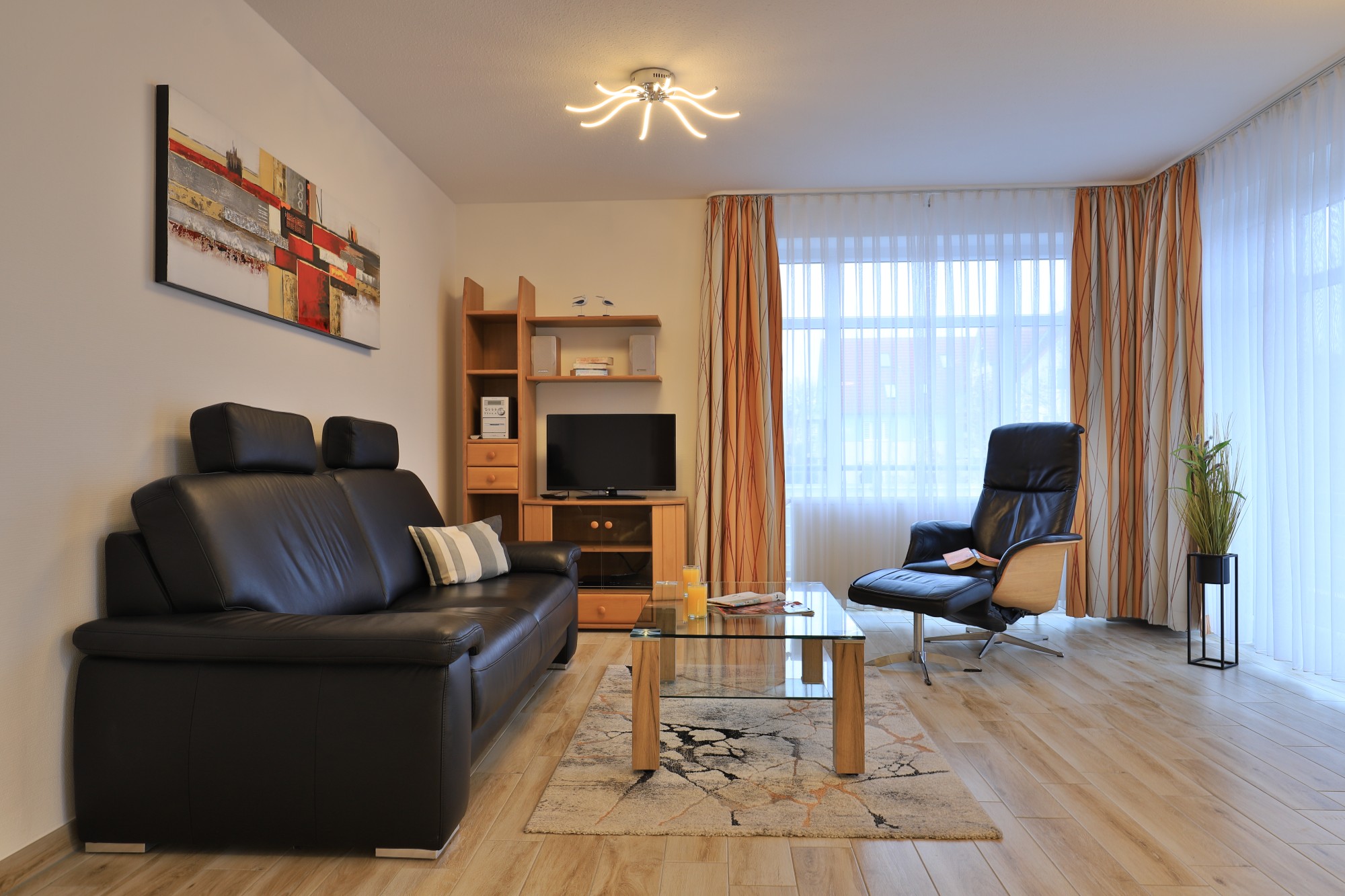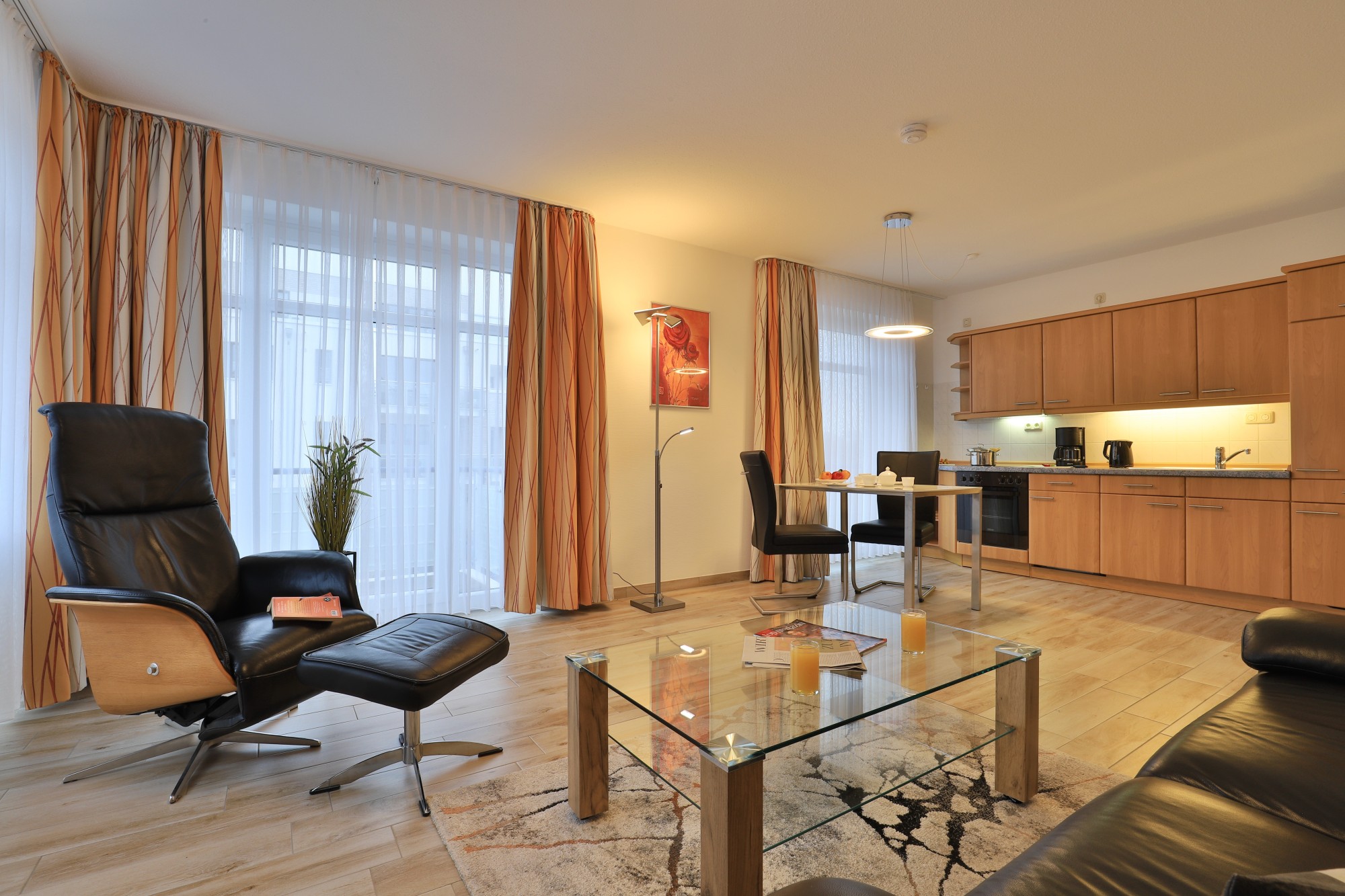 Die Appartementanlage Residenz "Haffblick" bietet 17 individuell ausgestattete Wohneinheiten je Haus, zudem im Untergeschoss des Hauses II einen Saunabereich, eine Infrarotkabine sowie einen Fitnessraum. Jede der komfortablen Wohneinheiten verfügt entweder über einen Balkon, teilweise auch zwei Balkone oder eine Terrasse. Die Wohneinheiten in süd- bzw. südwestlicher Ausrichtung liegen nah den Haffwiesen. Die Residenz Haffblick befindet sich in zentraler, aber dennoch ruhiger Lage. In wenigen Gehminuten (ca. 180 m) gelangen Sie zum feinsandigen Badestrand, zur Seebrücke, zum Kurpark mit der Konzertbühne, der Strandpromenade und der Dünenpromenade mit stetigem Meerblick, der Bäderbahn sowie zahlreiche Cafés und Restaurants.
