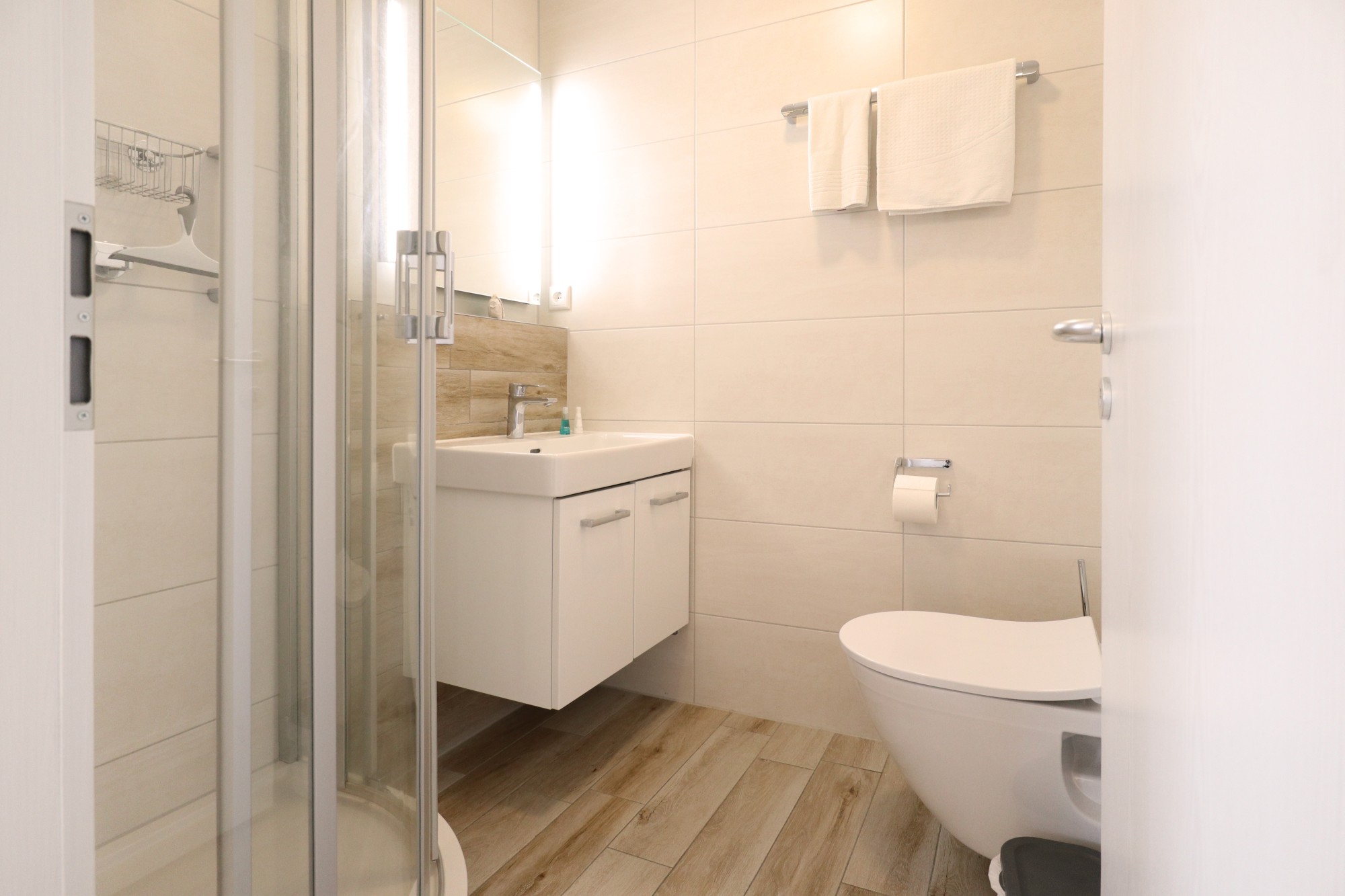 - Warmwasserbereitung im Duschbad über Durchlauferhitzer