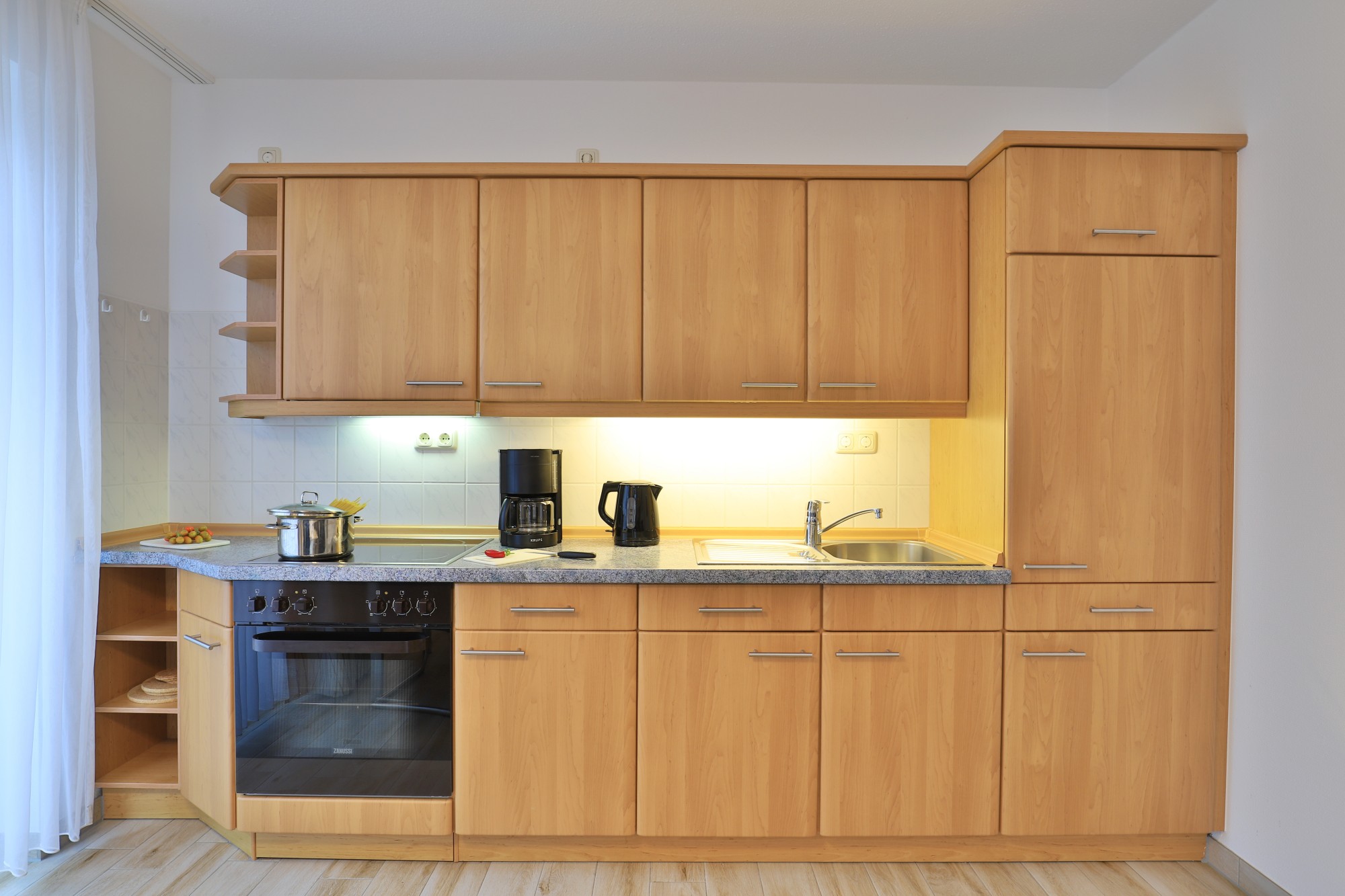 Elektroherd mit Ceranfeld und einem Geschirrspüler. ausgestattet. Die optisch ansprechende Küche bietet ausreichend Platz für alle Utensilien des täglichen Bedarfs.
