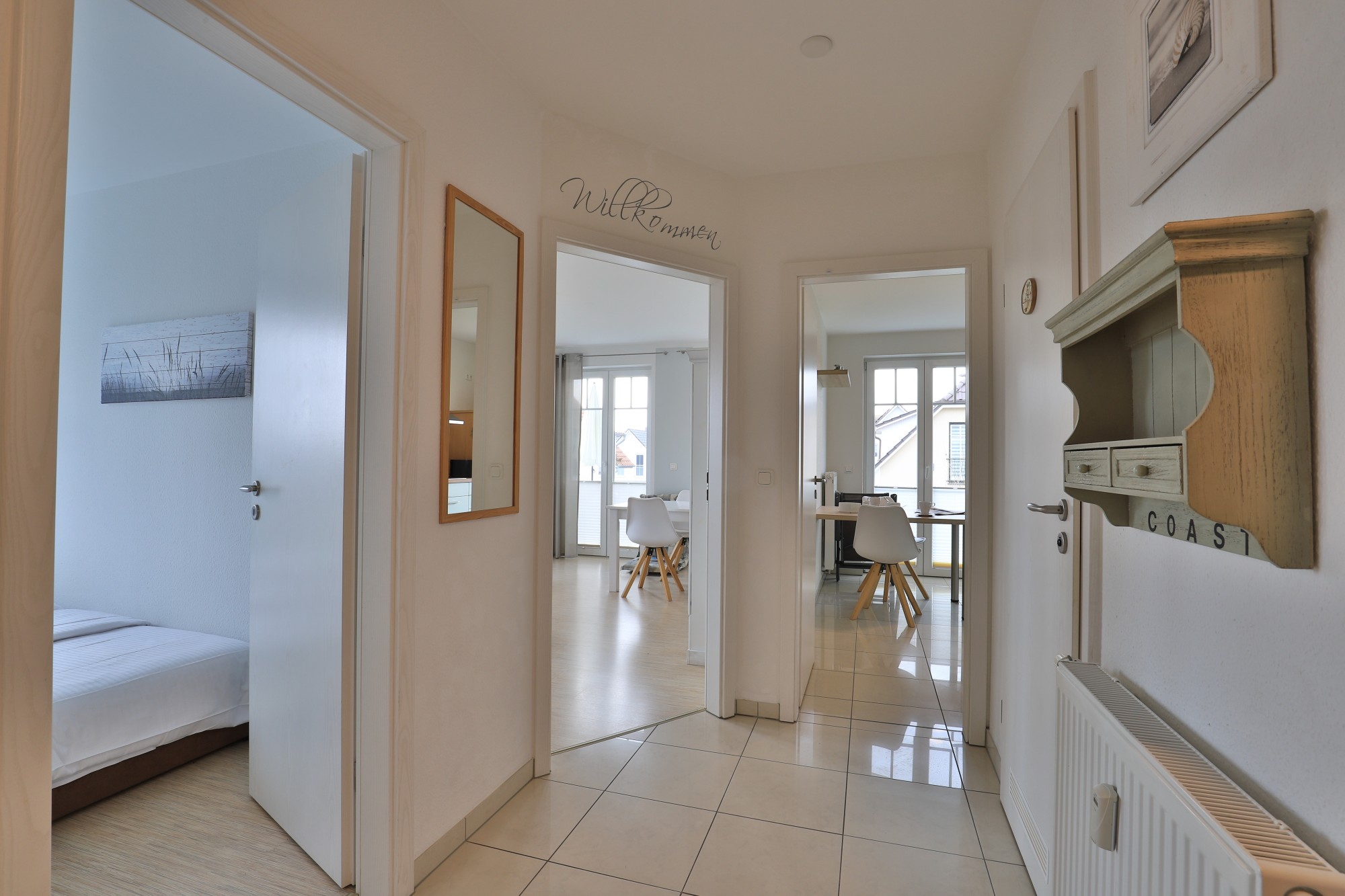 Die attraktiv eingerichtete Wohnung wurde von den Eigentümern ganz nach den Bedürfnissen für einen erholsamen Zweitwohnsitz eingerichtet. Sie ist aufgeteilt in: einen großzügigen Wohn-/ Essbereich, eine separate Küche mit Einbauküche, die Ihnen genügend Platz für die Zubereitung Ihrer Mahlzeiten bietet, zwei Schlafzimmer, einem modernen Duschbad (mit einer über Eck ausgeführten Dusche, Waschtisch, WC, Handtuchheizköper und Waschmaschine) und einem Flur.